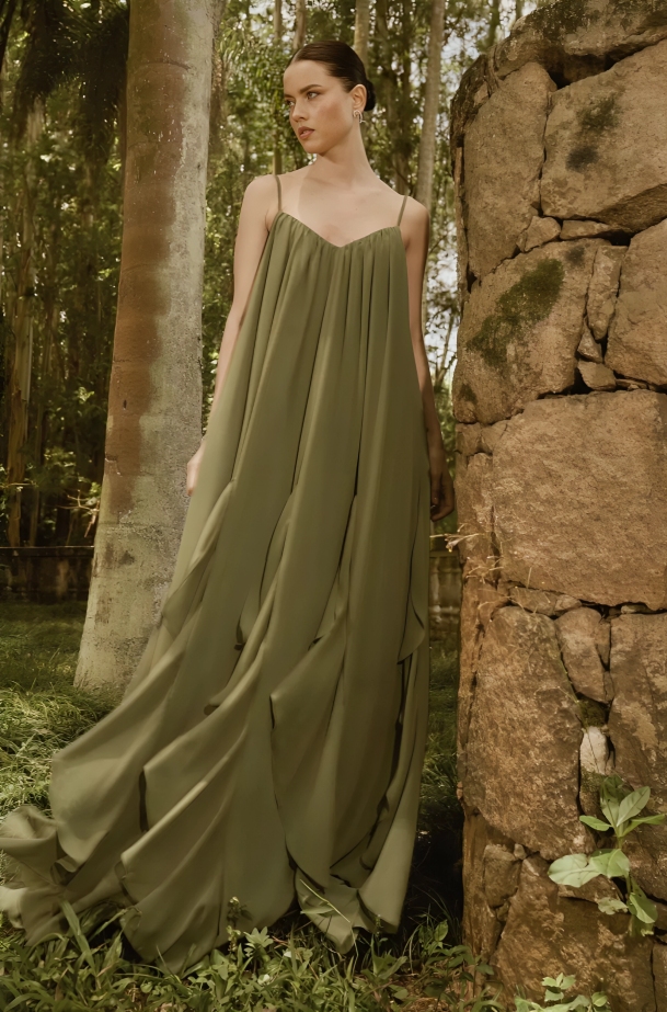 - Leve franzido com decote nas costas;
